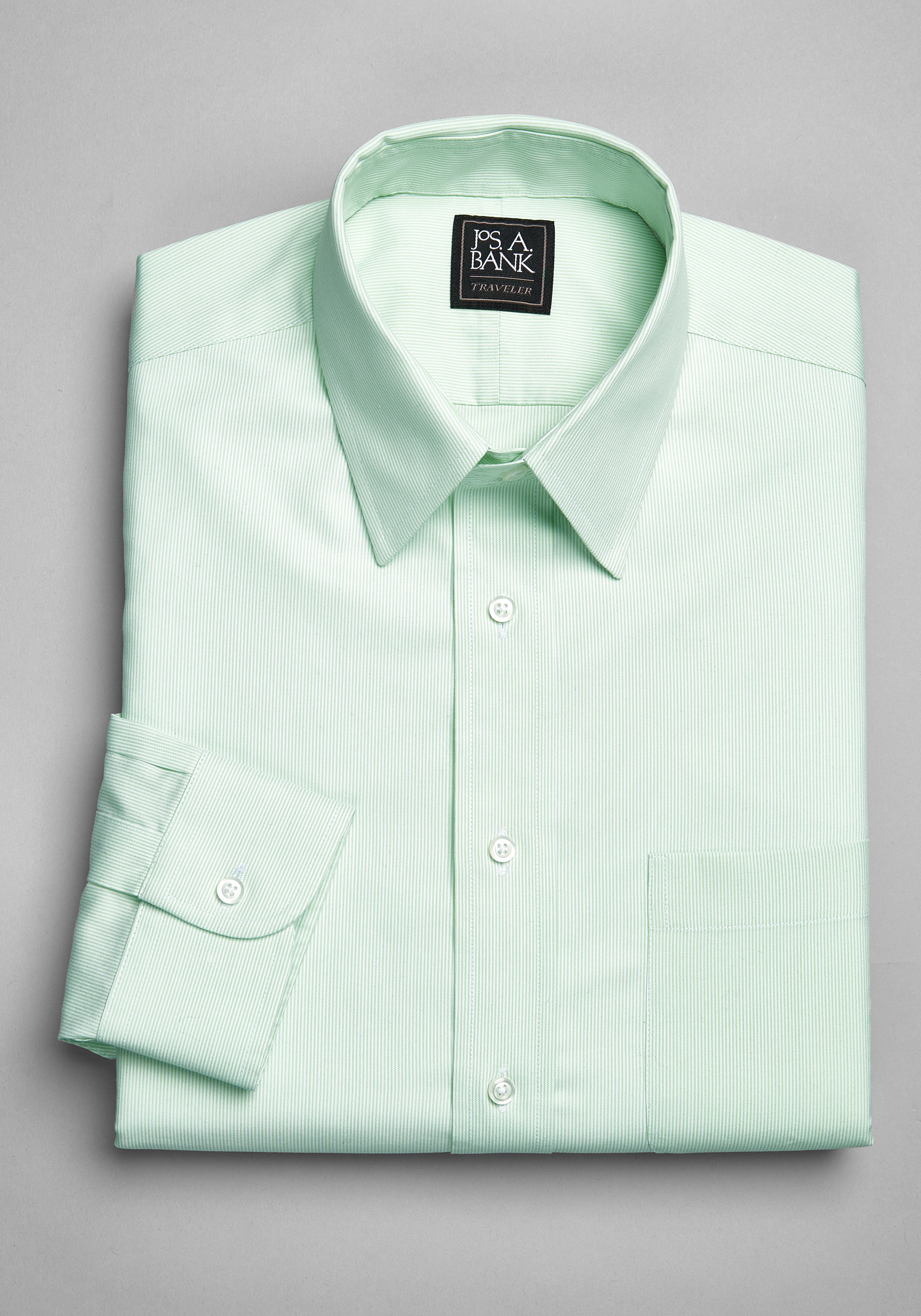 Traveler Collection Traditional Fit Green Stripe Dress Shirt Traveler Dress Shirts Jos A Bank